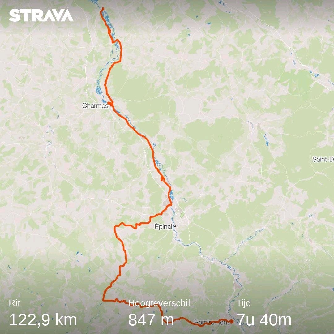Na het dal, waar het canal doorloopt, op en neer over de heuvelrug naar het stadje Remiremont. Ik neem vandaag een lekker hotelletje, want ik heb een feestje te vieren.