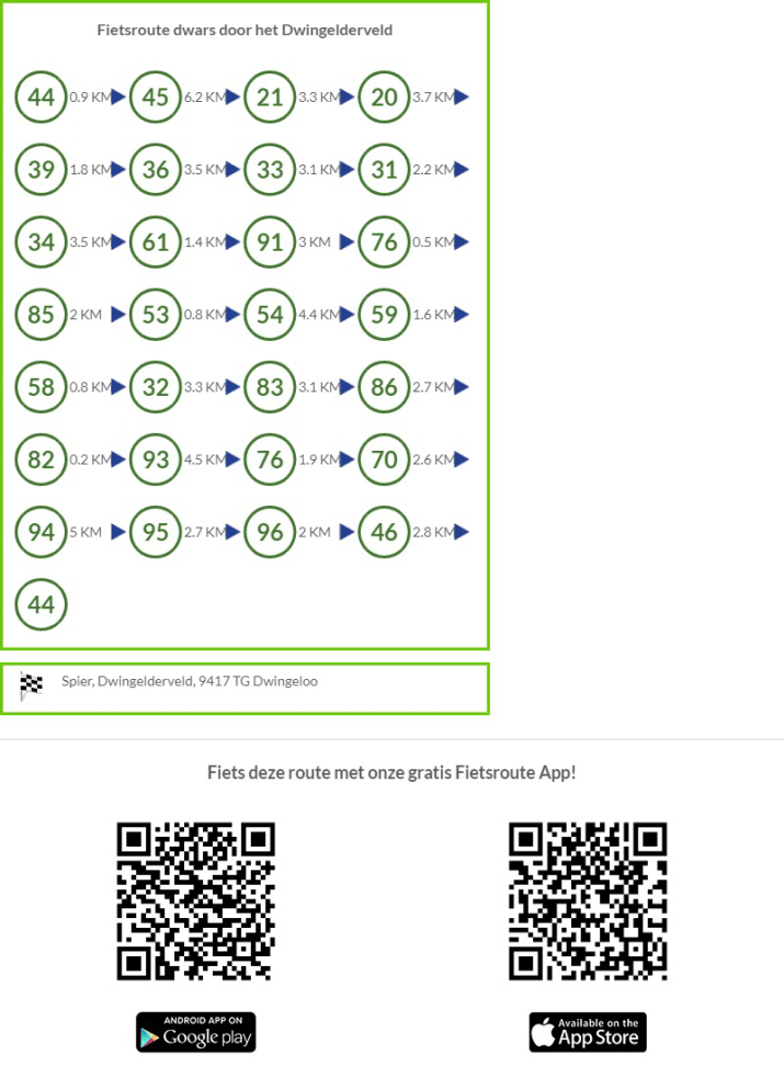 - terrein: op een klein stuk zandpad na, meest verhard, ook door het nationaal park Dwingelderveld
