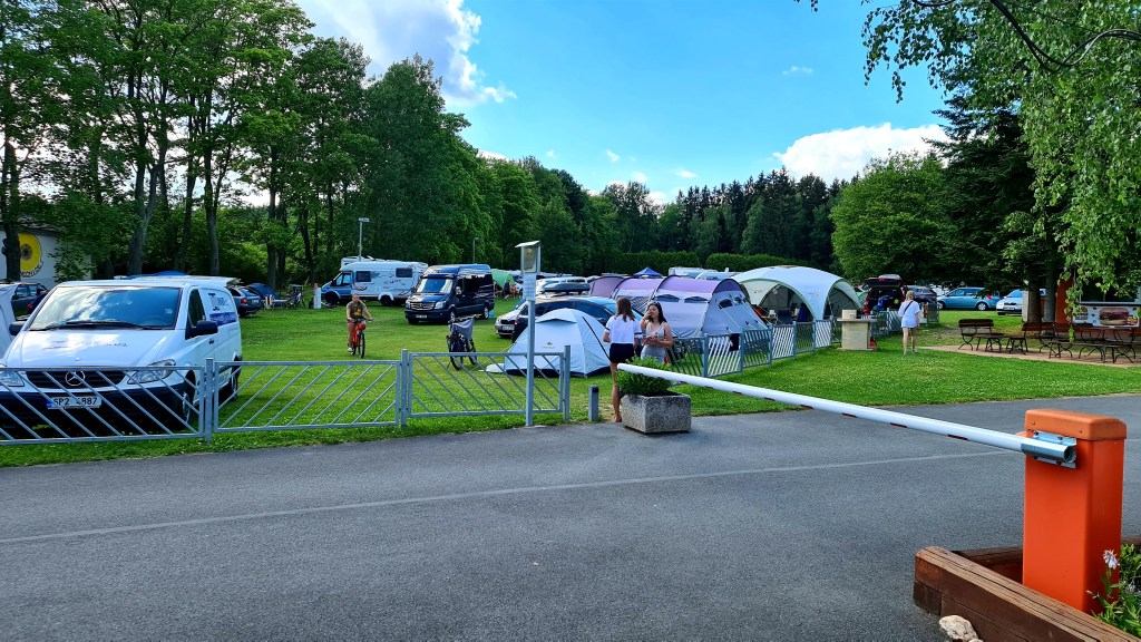 Het vakantieseizoen is begonnen. De camping in Konstantinovy Lazne is erg vol, met vooral Tsjechen. Ik prop mijn tentje ertussen, of beter, er naast. Dicht bij de uitgang. Ben morgen weer snel weg.