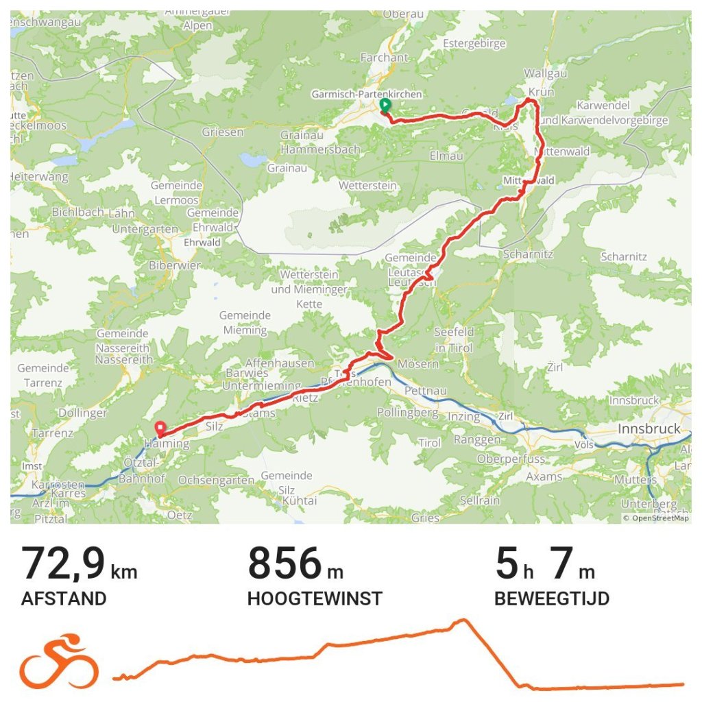 Duitse Donderdag toch? Wat kan ik vertellen? Bei nasse gibst spasse, zoiets. De Grens met Oostenrijk is ‘snel’ gepasseerd en het is een gestage klim, maar nergens problematisch. Van de 7 km lange afdaling naar Tefs kan ik niet genieten. Het regent, de weg is glad (tenminste ik zie olievlekken), dus moet goed en zorgvuldig bijremmen. Beneden voelen mijn benen als klompen ijs.