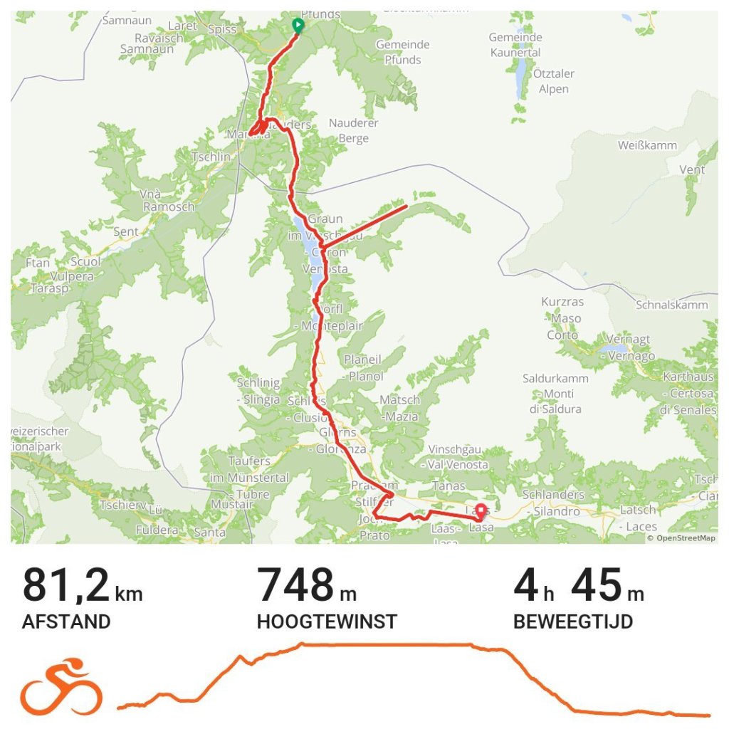 De afdaling naar Laas is heerlijk in de steeds lauwere lucht. Om 2 uur vind ik het goed zo. In het dorp van het marmer zet ik mijn tent op en eet een bauerntoast, met tiroler spek. Het was een energieke dag.