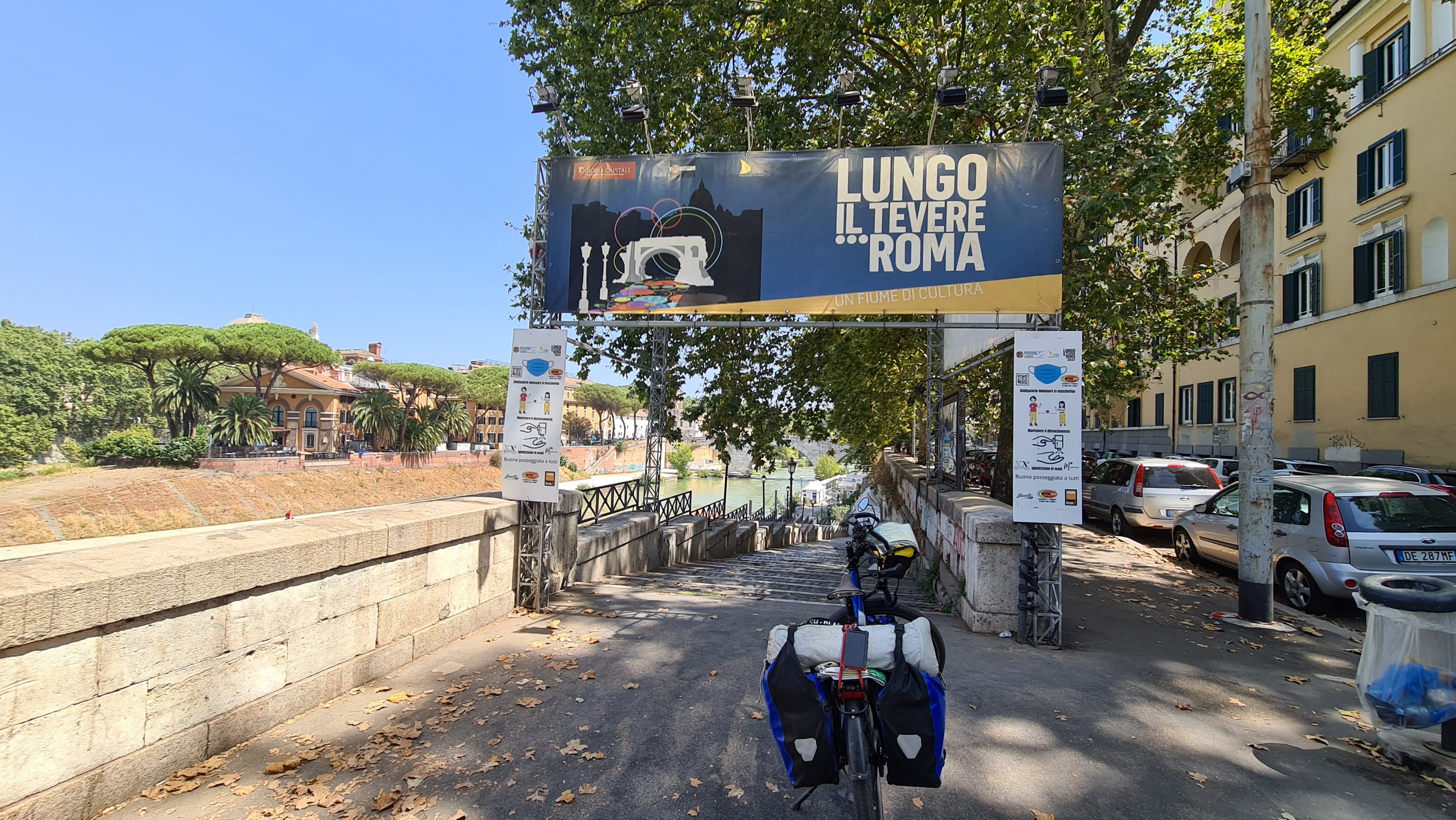 Nadat ik nog wat dwaal in Rome zoek ik het fietspad langs de Tiber op. Het is een makkelijke manier om de stad uit te rijden.