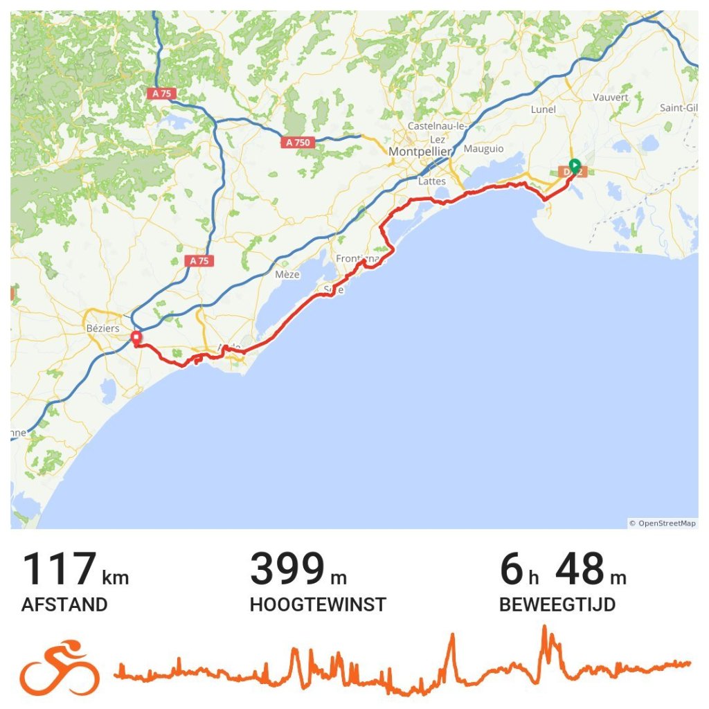 Na 3 uur werd het droog en kon ik nog even, op de schoenen na, mezelf vochtvrij fietsen langs het canal du midi.