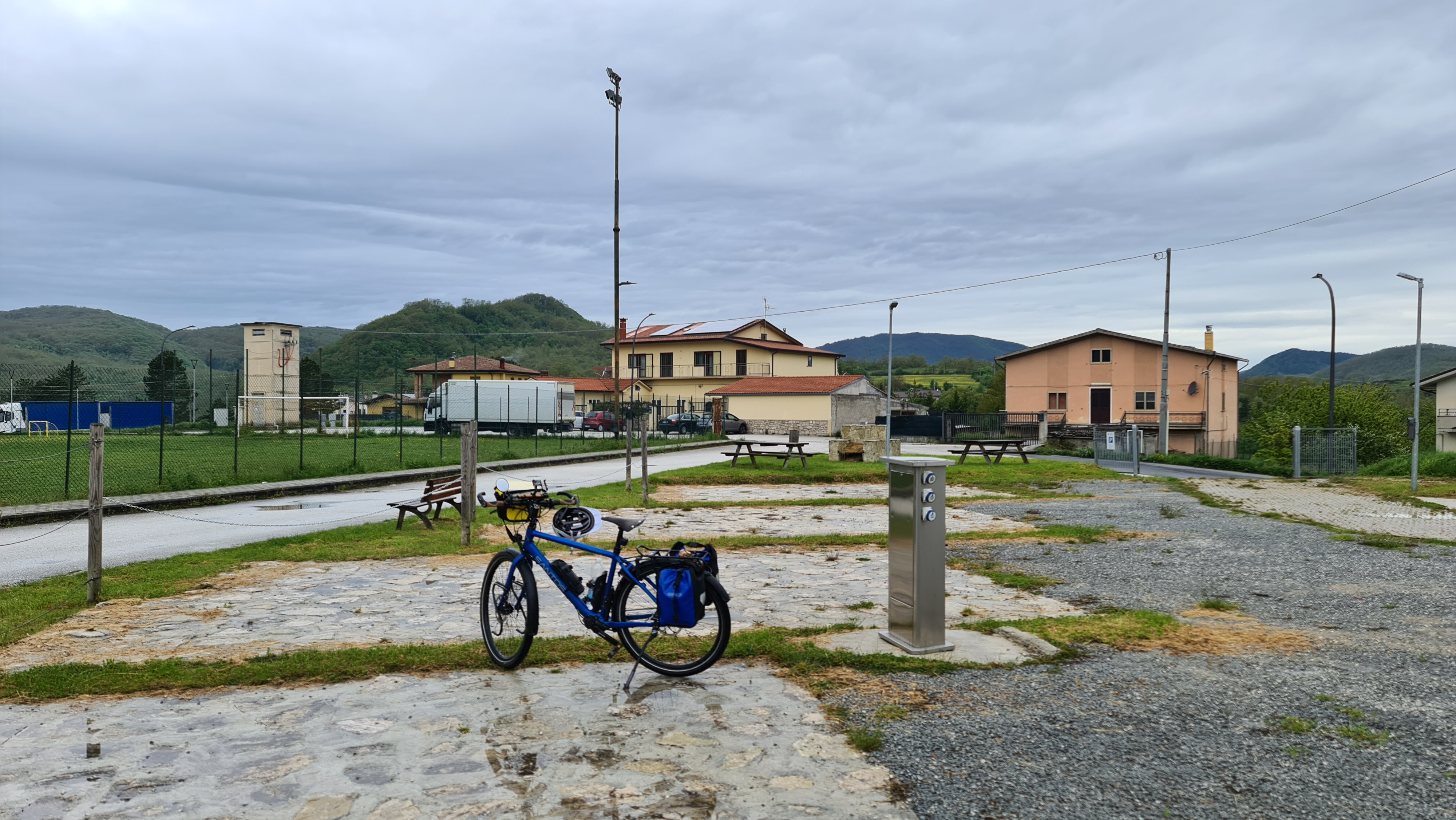 Het deed me terugdenken aan de afdaling van de Splügenpas, Italië in. Toen vroren je handen en oren ook van je lichaam af. In zo’n afdaling blijf ik mijn benen bewegen, om niet te verstrammen. Gelukkig is het weer klimmen naar Barrea: m’n lichaam warmt snel weer op. Regen is niet erf, maar kou!