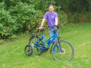 Ben heeft gewone fiets, met twee extra wielen zonder ondersteuning en wil daarmee naar Rome gaan rijden. Zo’n 50 km per dag, in twee en een halve maand.