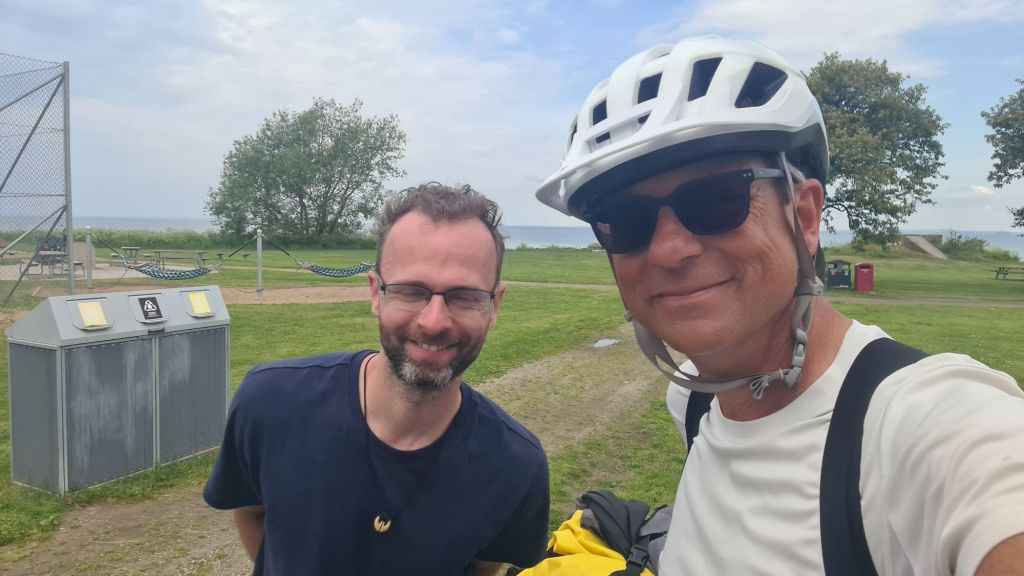 Een heel andere vorm van Släppa taget doen Sabrina en Andy. Ik kom ze onderweg tegen bij een toiletgebouw. Zij hebben hun werk opgezegd en fietsen nu samen vanuit Berlijn, waar ze wonen naar de Noordkaap en daarna naar Zuid Afrika! Ze hebben er 2 jaar voor uitgetrokken.