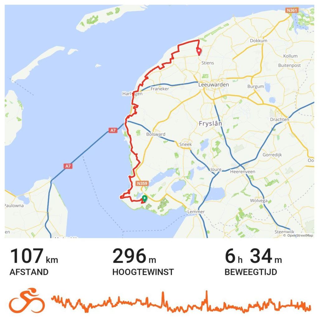 De volgende etappes zijn wat langer. Vanaf Oudemirdum reed ik gisteren al naar het IJsselmeer en Rondje Friesland blijft daar grotendeels langs rijden. Op een paar uitzonderingen na; voor Bakhuizen en Warns gaat deze landinwaarts.