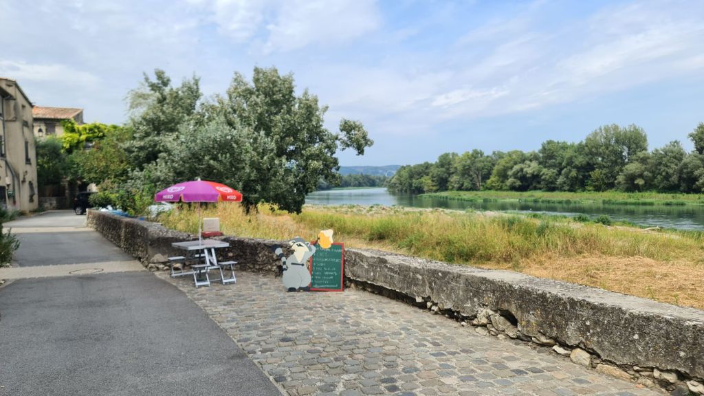 Vandaag passeer ik een aantal stuwen en sluizen. De Via Rhône is overal strak verhard en soms eentonig langs de rivier. Het dal is meestal breed. Gelukkig is de wind niet hard. Ik moet niet denken aan een blazende mistral uit het noorden.