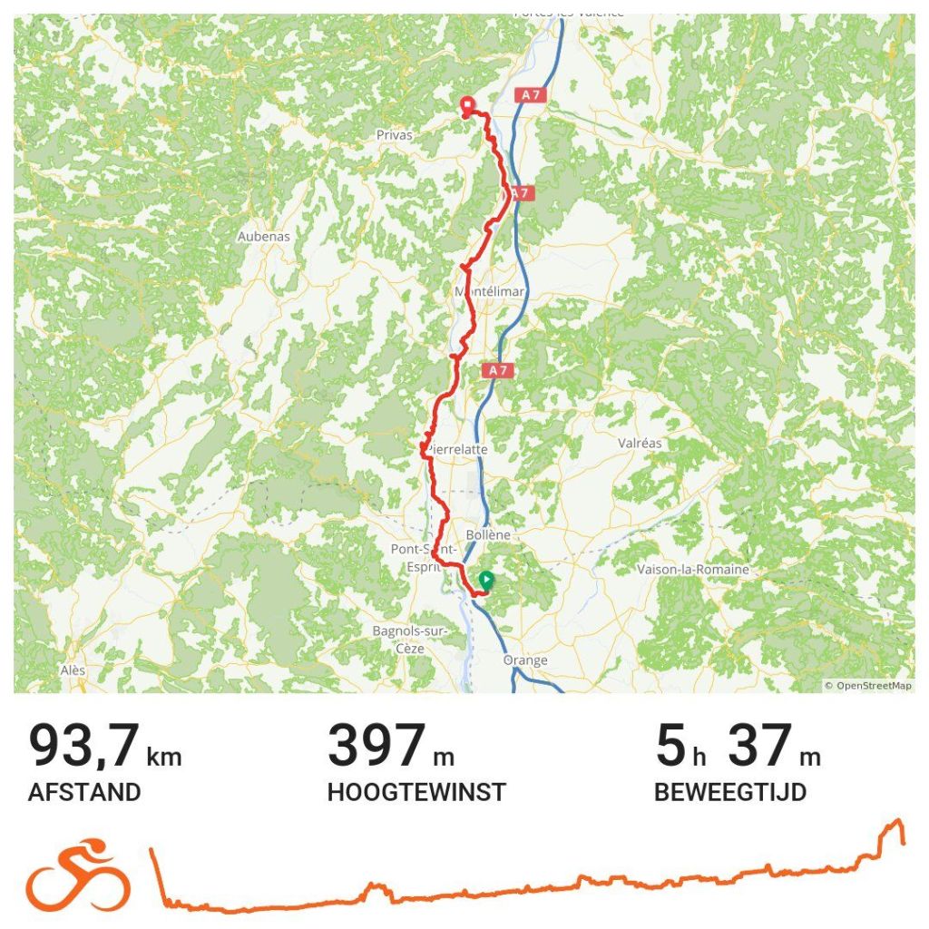 Ik lunch net na de kerncentrales van Crues en kom uit in Baix, geen drukte hier, terwijl dat het wel meer aandacht verdiend. In Le Pouzin zoek ik een camping op, die in het dal van de L’ ouveze ligt. Een zijrivier van de Rhône, dus dat mag.