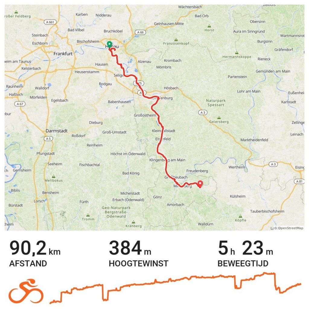 Vandaag vervolgden we onze route richting Hanau. Zondag, dus alles gesloten, maar bij het station vonden we gelukkig een bakker voor ontbijt. Even later, bij een waterfontein, spraken we een wielrenner. Een ontmoeting die blijft hangen: zijn zoon was met Pasen overleden aan kanker. Sinds 2 jaar had hij niet meer gefietst, uit angst dat hem onderweg iets zou overkomen terwijl hij mantelzorger was. Nu pakt hij het langzaam weer op, maar de emotie zat hoog. We wensten hem sterkte en reden stil verder.