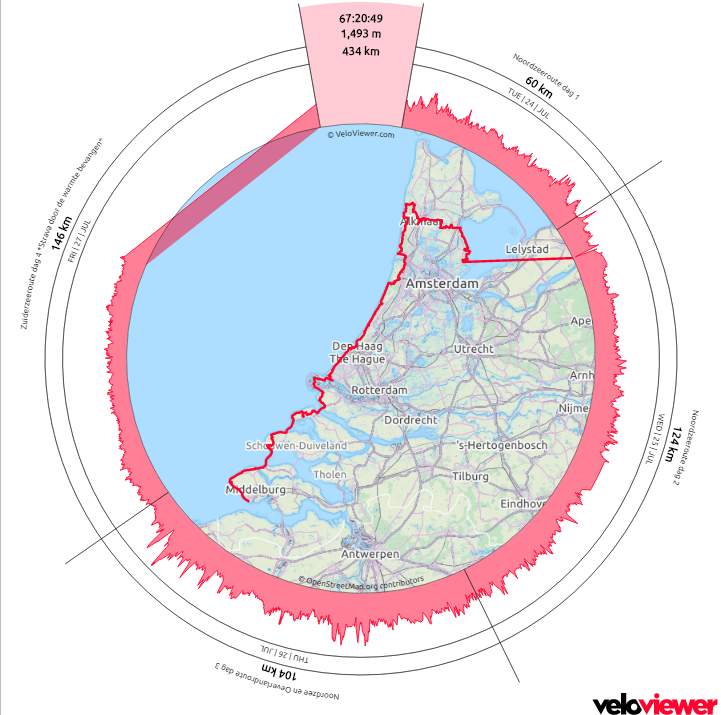De totale afstand van Vlissingen tot Amsterdam is 400 km